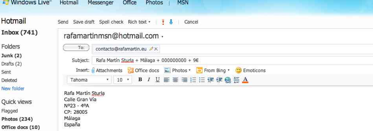 Cualquier duda que tengas por mínima que sea sobre el desarrollo, contenido, normas o procedimiento del sorteo, no dudes en hacérmela llegar a través del e-mail de Exclusivos, de mi e-mail de contacto personal contato@rafamartin.eu o a través del messenger, skype o iChat.
